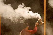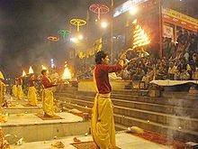 Evening Ganga Aarti with open flames, at Dashashwamedh ghat, Varanasi